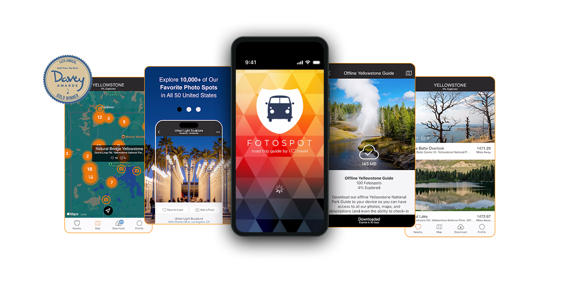 Fotospot is “your ultimate road trip companion! Explore well over 11,000 handpicked, photo-worthy tourist attractions across all 50 United States (plus D.C.)” and allows users to view, save, “check-in”, add photos to and navigate to the platforms curated attractions.